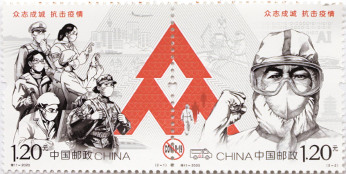 另外,十一屆三中全會召開、奧林匹克運動會、中國夢——國家富強系列郵票等重大事件、題材,濃縮在一枚枚郵票中,讓人眼前一亮。其中,中國郵政于2020年5月11日特別發(fā)行的《眾志成城 抗擊疫情》郵票1套2枚,采用連票形式,郵票圖案中“眾”字將兩枚郵票緊密連接,寓意著面對突發(fā)重大公共衛(wèi)生事件,在黨中央堅強領(lǐng)導(dǎo)下,全國上下凝聚起眾志成城、抗擊疫情的強大力量。