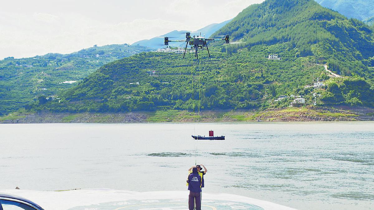 無人機(jī)跨江轉(zhuǎn)運,讓巫山脆李快速下山進(jìn)城?! 跬豕馄健z